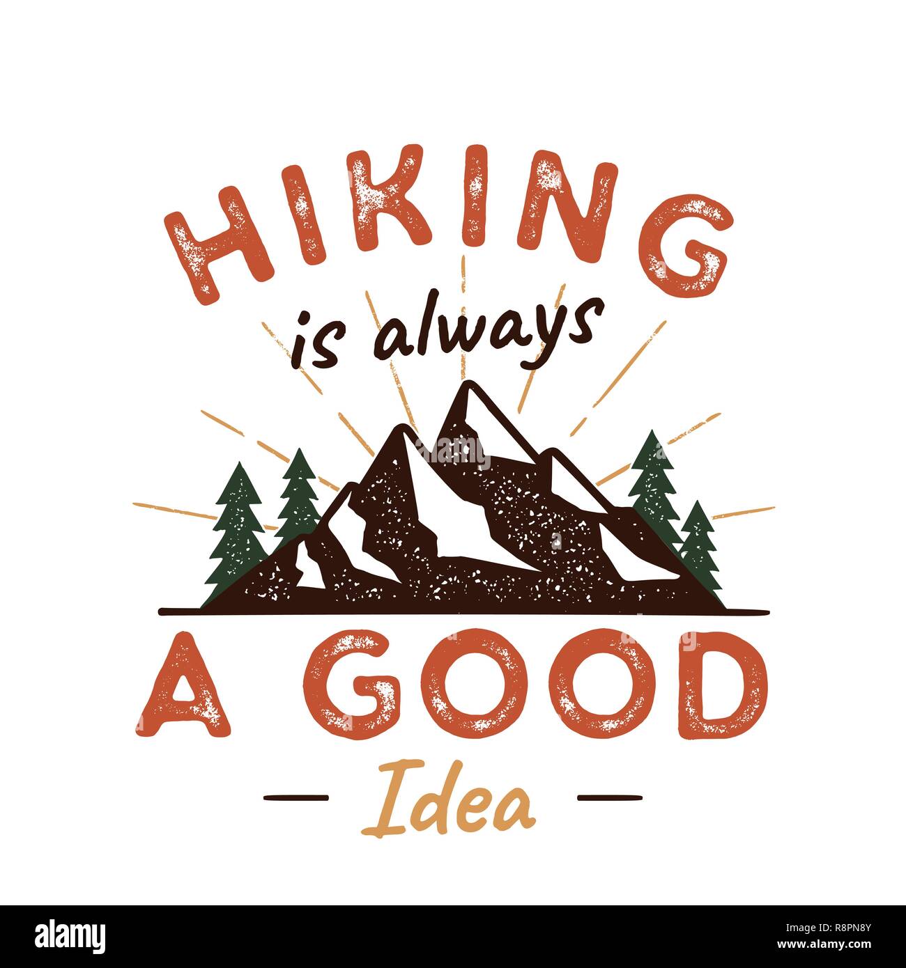 image source https://www.alamy.de/draussen-abenteuer-abzeichen-mit-zitat-wandern-ist-eine-gute-idee-und-berge-baume-sunbursts-schon-fur-camping-freunde-fur-t-shirt-tasse-andere-drucke-vektor-isoliert-auf-weissem-image229151691.html